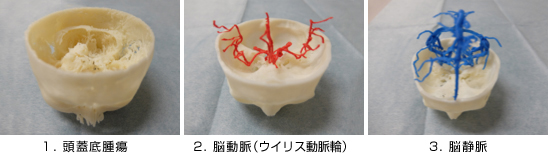 脳動脈瘤クリッピング術や頭蓋底腫瘍摘出術のアプローチの方法や、術中の病巣部と周囲血管の解剖学的位置関係を3Dプリンターを用いて作製した患者テーラーメイドモデルを用いて術前シミュレートすることにより、より安全に治療が行えるメリットを有する。